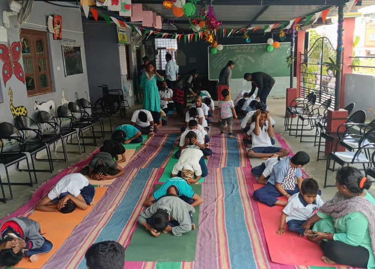 Today, we welcome over 60 children every day, giving them a space to learn, heal, and grow with confidence. From brushing their teeth to practicing yoga, from speech therapy to creative learning, every small step helps them move closer to independence and dignity.